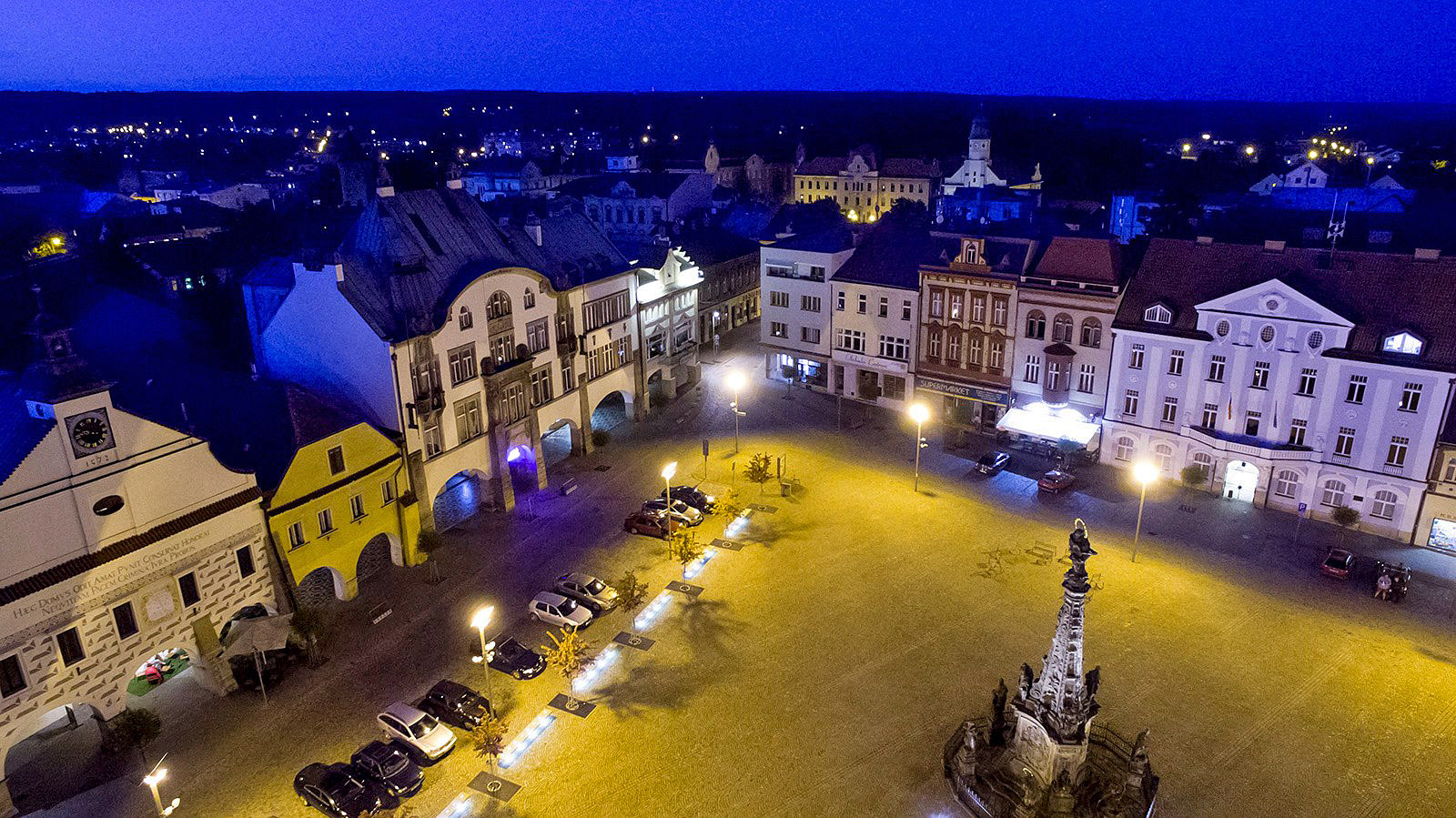 Noční náměstí ve Dvoře Králové a Kuks z dronu Ládi Válka
